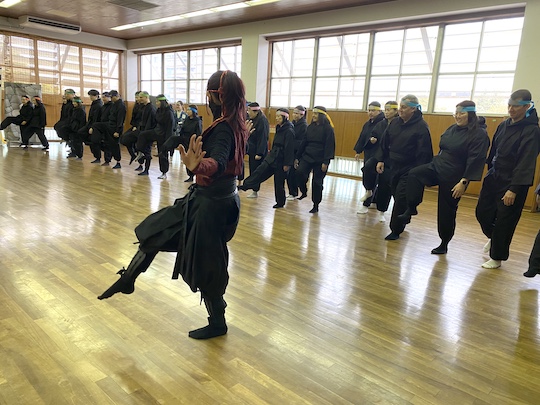 忍者チームビルディングは忍者の歩き方や刀の使い方、手裏剣などを体験し、